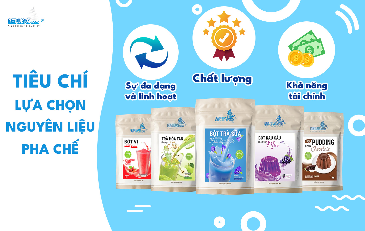 Khi lựa chọn nguyên liệu pha chế để kinh doanh, có ba tiêu chí quan trọng cần xem xét: