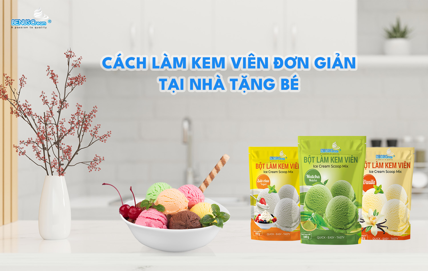 Trên đây là công thức làm kem viên đơn giản tại nhà với bột làm kem viên Benuscream. Chờ gì nữa mà không bắt tay vào làm ngay những loại kem viên hấp dẫn để làm quà cho bé vào ngày Quốc tế thiếu nhi ngay thôi.